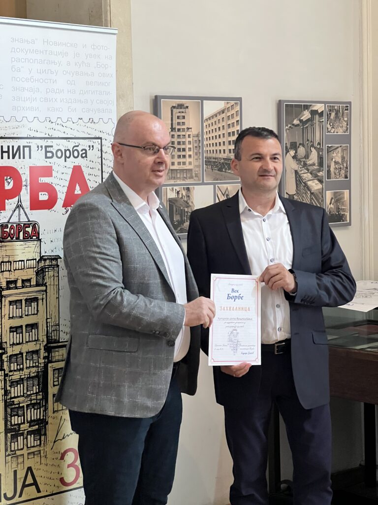 – Изложба ,,Век Борбе“ је замак културе и културни центар учинила још богатијим. Драго ми је што смо успоставили овако добру и пријатељску сарадњу која се полако проширује и продубљује, и која је резултирала овом изложбом. Борба као колевка журнализма данас прича и пише о култури и то на прави начин, уз то промовише и Србију и све оно што је у њој вредно. Ми смо почаствовани што сте данас код нас и што ћемо имати прилику да нашим грађанима прикажемо цео век постојања ове куће, објаснио је Ђуровић.