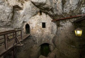 Археолошка налазишта у шупљини иза Предјамског дворца сведоче да је човек овде живео већ у камено доба. На улазу у ходник Коњска стаја пронађени су остаци из римских времена, а у Ходнику имена могу се видети потписи из 16. века.