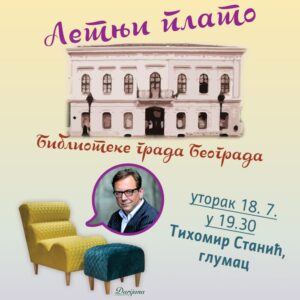 Данас, 18. јула 2023. године, у 19.30 сати, на платоу испред зграде Библиотеке града Београда у Кнез Михаиловој улици дружићемо се са глумцем Тихомиром Станићем
