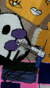 Процес израде тепиха изискује доста времена, стрпљења и креативности. Почетак подразумева развлачење платна на рам на који се прецртава жељена скица, а главни алат који Мина користи јесте тафтинг пиштољ, помоћу ког убацује вуну у платно и сече тепих.