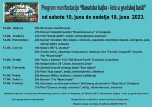 Манифестација Банатска бајка – лето у Градској башти седма по реду, ове године се одржава од 10. јуна па све до 27. августа у Зрењанину