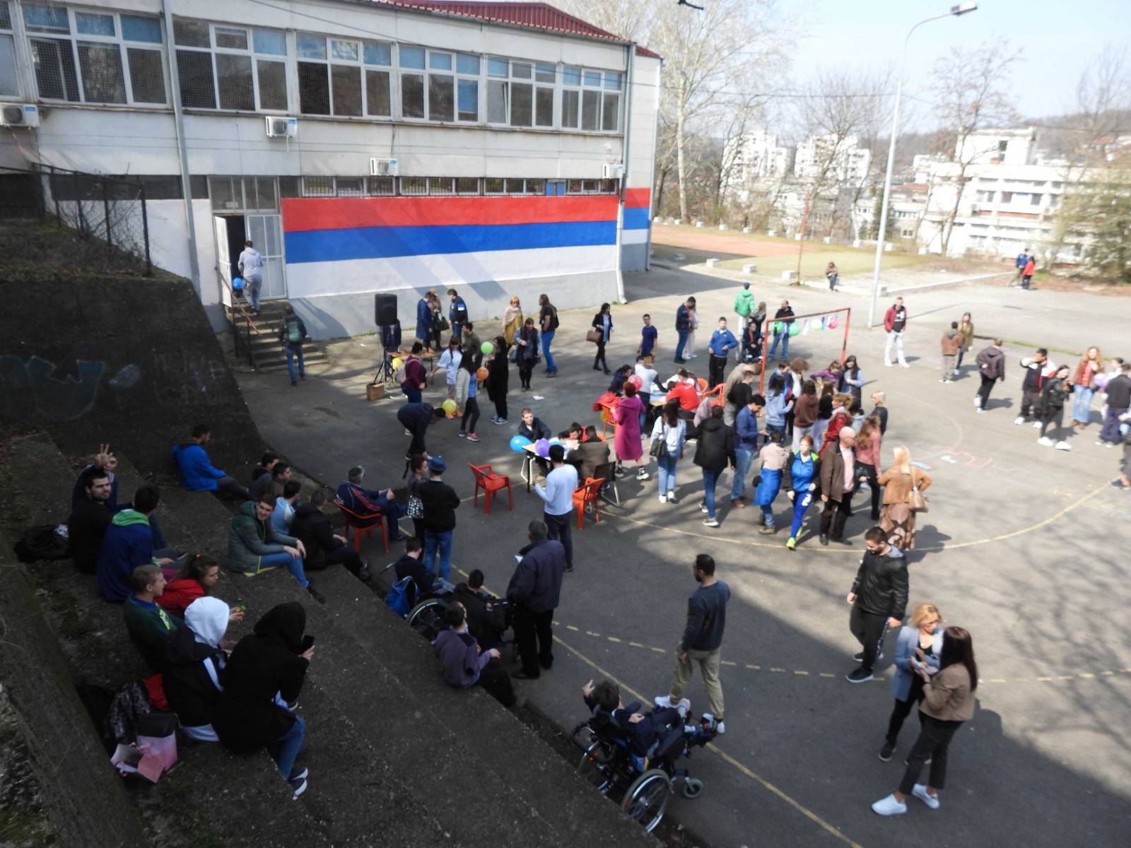 Ученике Средње занатске школе посетили су ученици Основне школе “Никола Тесла”. Они су се окупили у школском дворишту да заједно осликају школски терен, уз музику и слатко послужење – крофне, које су припремили ученици и наставници.